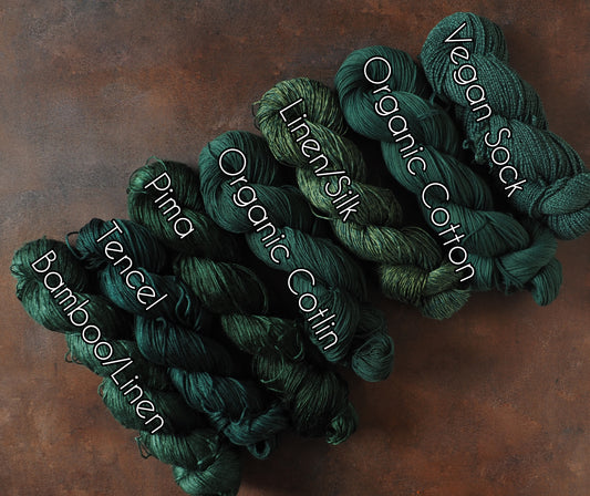 Bamboo/Linen Fingering | Cotton/Bamboo Fingering | Organic Cotton Fingering | Cotton/Linen Fingering | Organic Cotlin Fingering | Pima Fingering | Tencel Fingering | Vegan Sock | Linen/Silk | Soft Pima Sport | Pima DK | Cotton/Bamboo DK | Organic Cotton DK | Cotton/Linen DK | Tencel DK | Pima Worsted | Organic Worsted