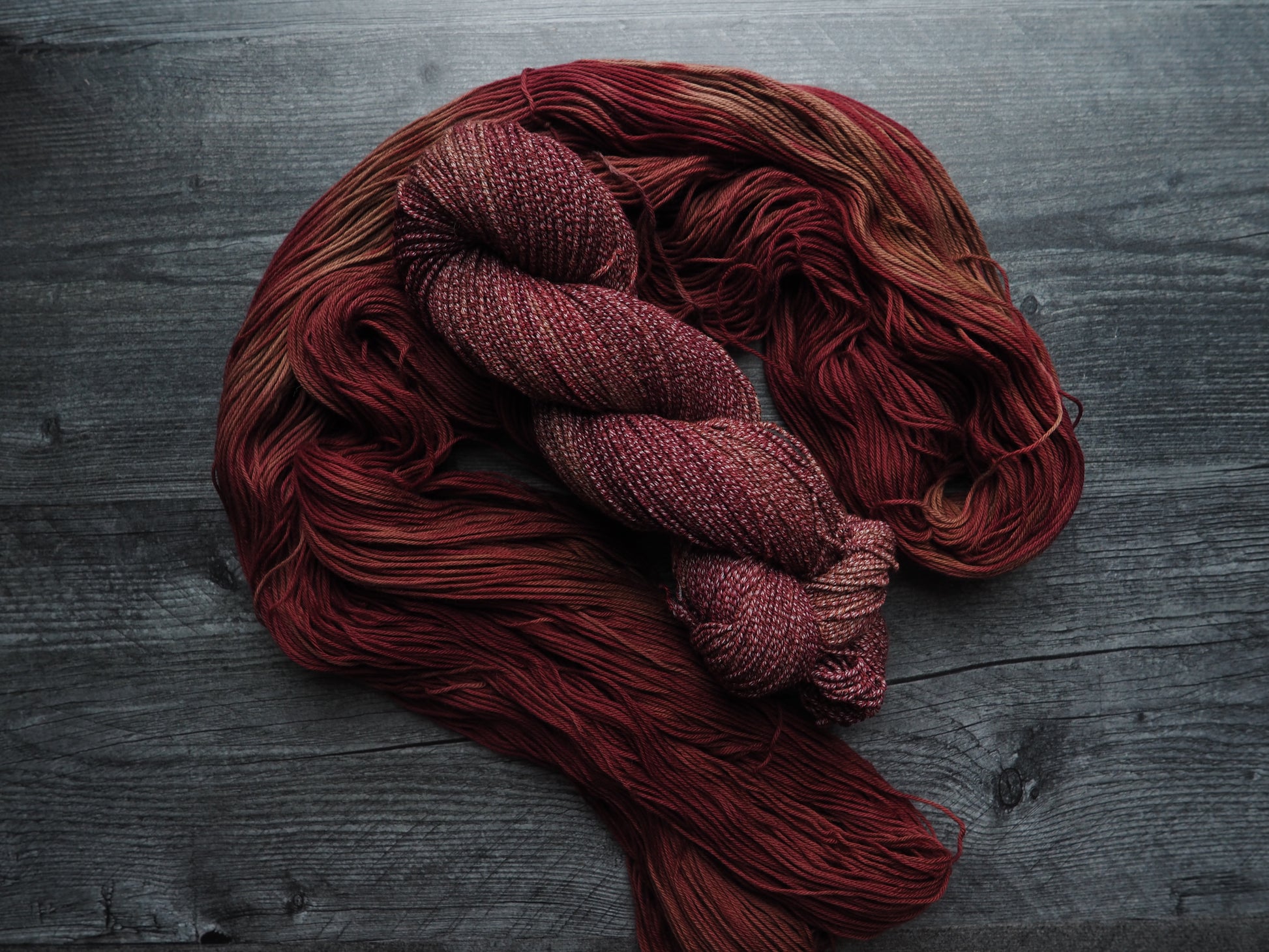 Due to the aspect of hand-dyed yarn and the small batches, no two skeins will look the same, even though I use the same formulas every time. Because of this, I recommend buying enough yarn to finish your project and alternating skeins while crafting. If you order a sweater quantity, they will all get dyed together and part of the same family.