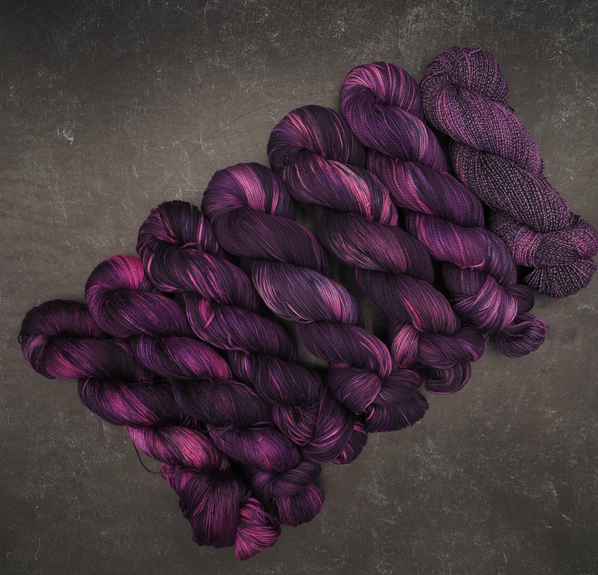 Due to the aspect of hand-dyed yarn and the small batches, no two skeins will look the same, even though I use the same formulas every time. Because of this, I recommend buying enough yarn to finish your project and alternating skeins while crafting. If you order a sweater quantity, they will all get dyed together and part of the same family.