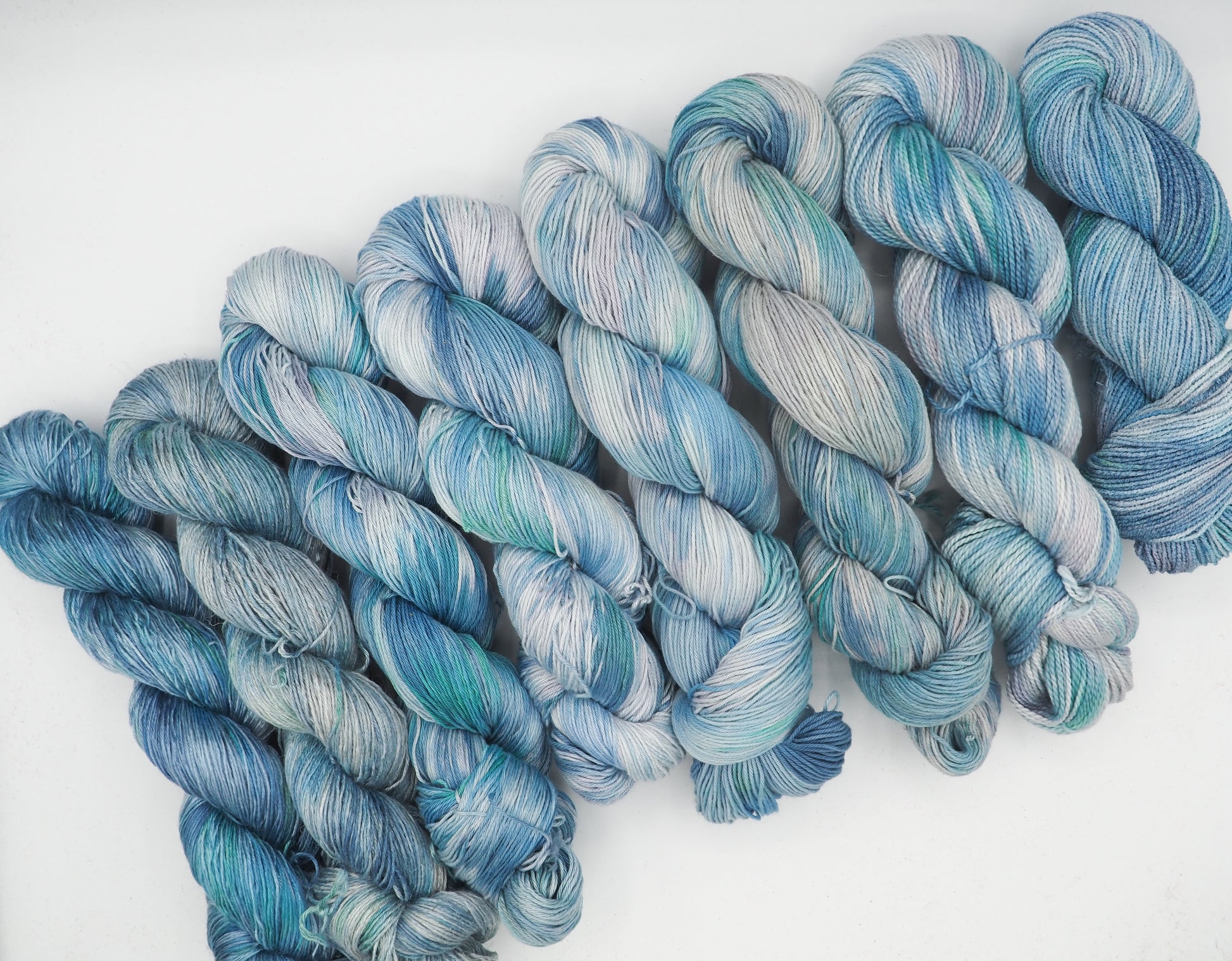 Due to the aspect of hand-dyed yarn and the small batches, no two skeins will look the same, even though I use the same formulas every time. Because of this, I recommend buying enough yarn to finish your project and alternating skeins while crafting. If you order a sweater quantity, they will all get dyed together and part of the same family.
