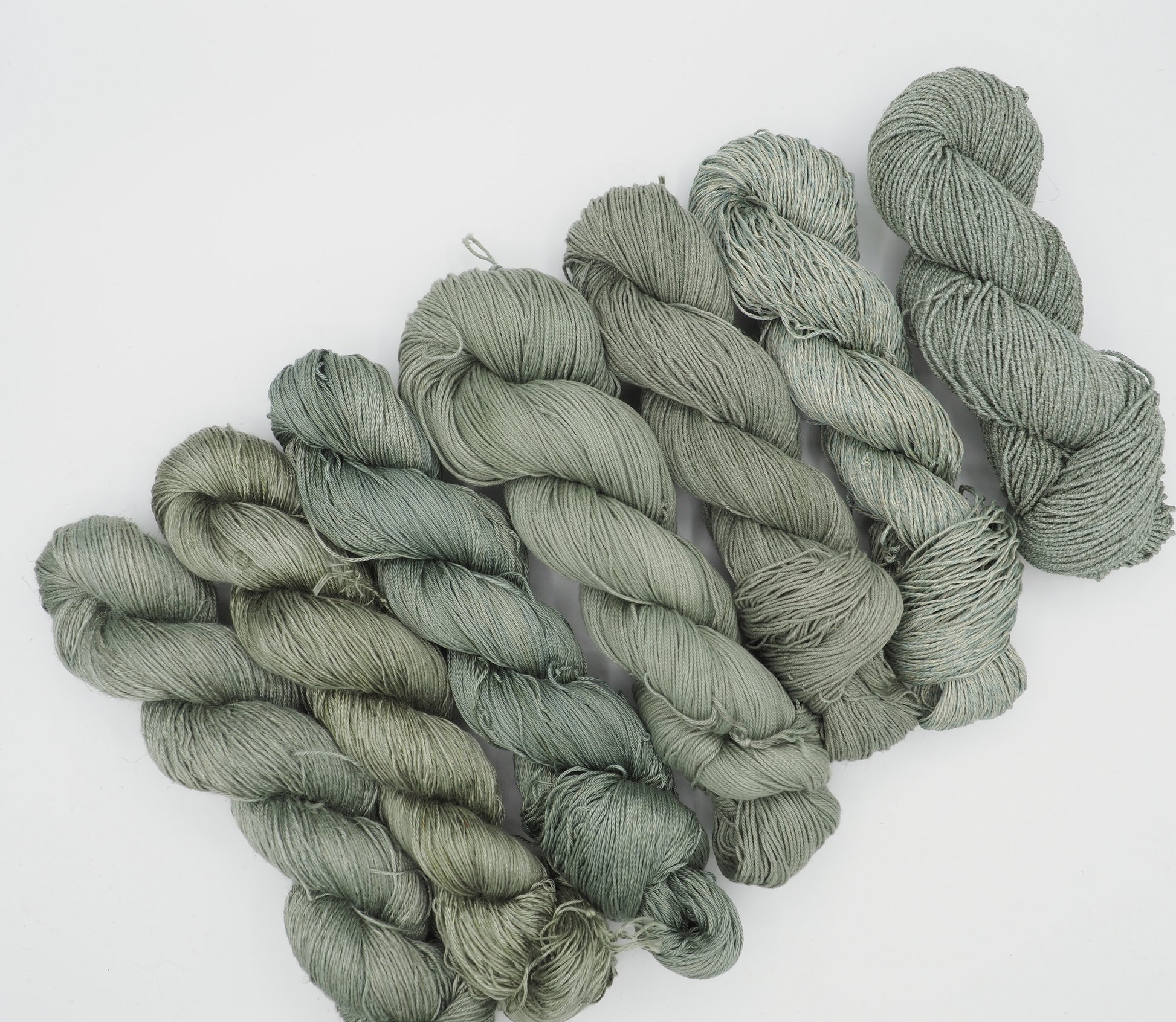 Note: Cotton/Bamboo, Cotton/Linen and Soft Pima are not pictured - Cotton/Bamboo and Soft Pima dye similarly to Organic Cotton, while Cotton/Linen dyes similarly to our old Cotlin base