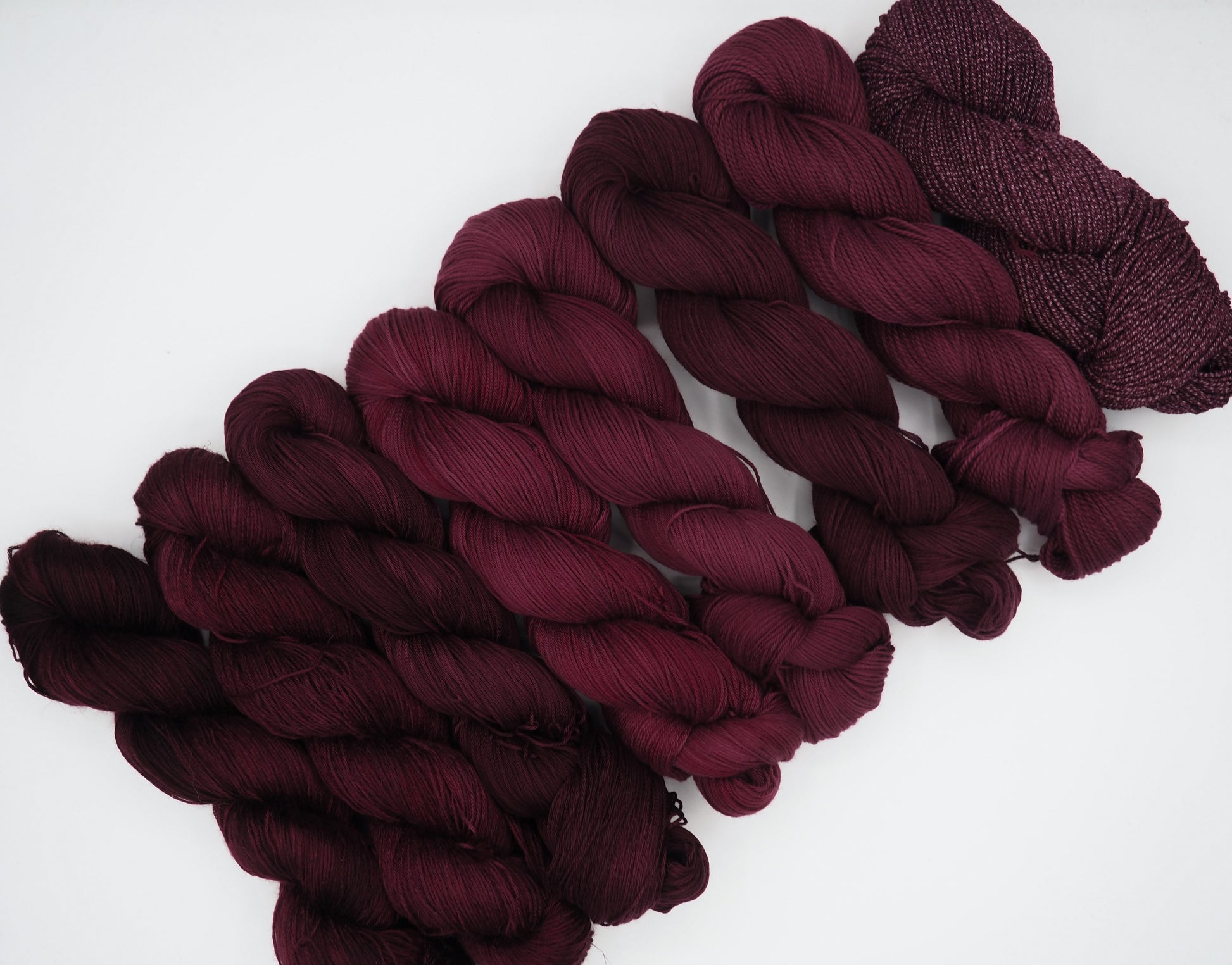 Due to the aspect of hand-dyed yarn and the small batches, no two skeins will look the same, even though I use the same formulas every time. Because of this, I recommend buying enough yarn to finish your project and alternating skeins while crafting. If you order a sweater quantity, they will all get dyed together and part of the same family.