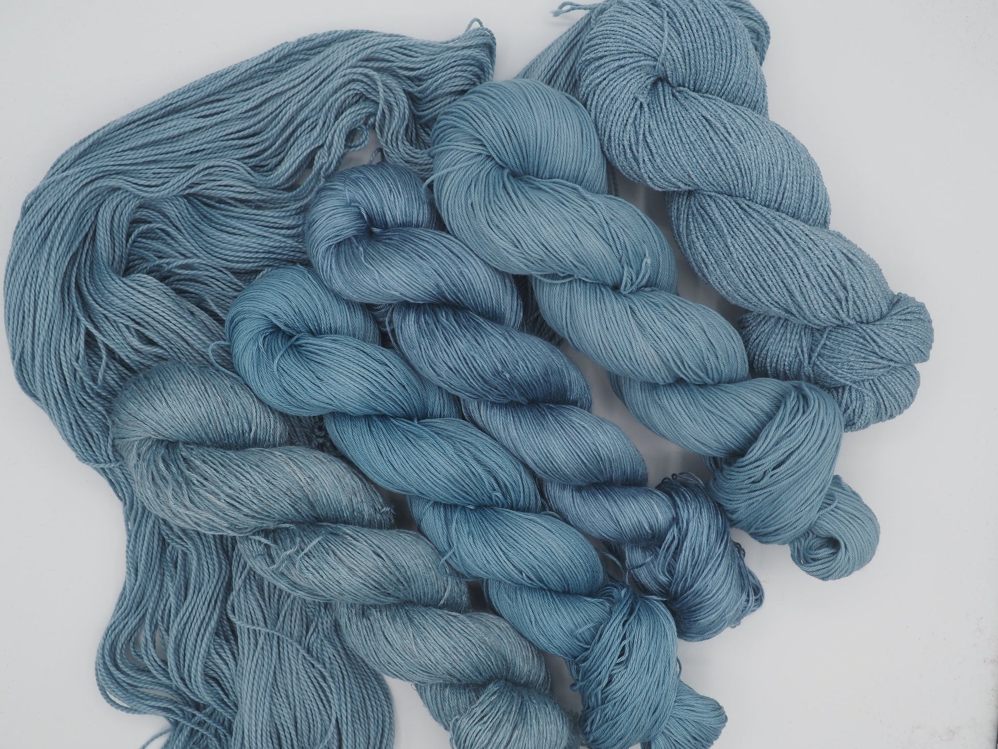 Note: Cotton/Bamboo and Cotton/Linen are not pictured - Cotton/Bamboo dyes similarly to Organic Cotton, while Cotton/Linen dyes similarly to our old Cotlin base